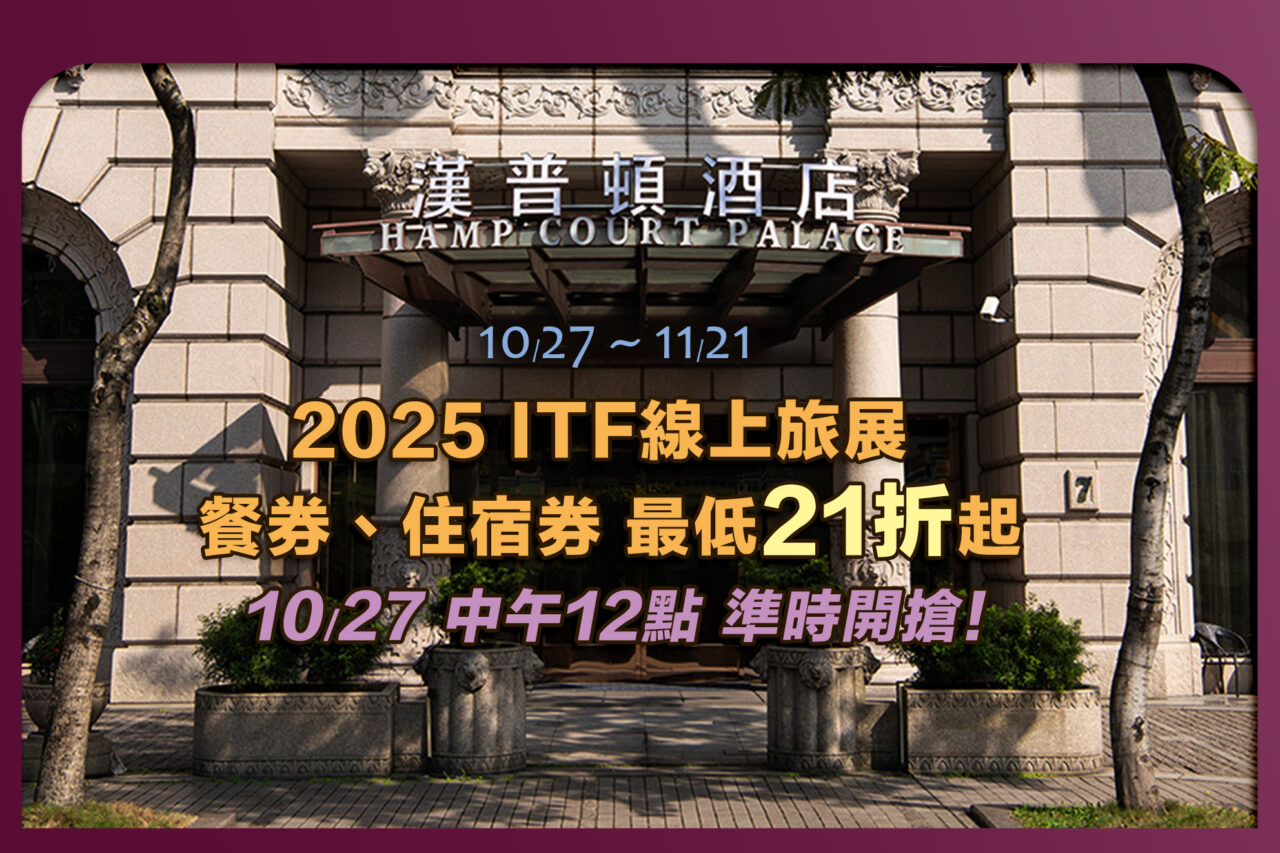 台北漢普頓酒店即日起推出「2025 ITF台北國際線上旅展」優惠活動,一年僅有這一檔,餐券、住宿券最低只要21折起。精打細算的你看過來,這波千萬別錯過,從從容容、游刃有餘把優惠帶回家吧~