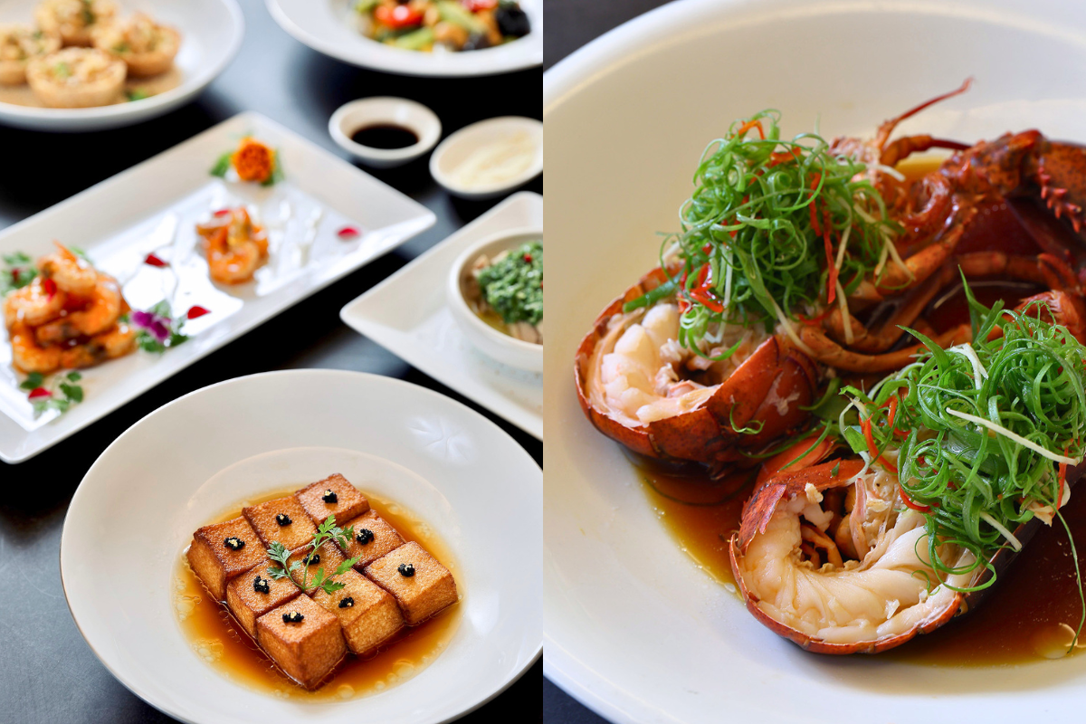 桌宴菜色精選上海風味與海陸珍饌,包含:江南山水六品集、鮮香乾燒龍蝦件、蟹鉗干貝蒸水蛋、爆炒宮保骰子牛、金銀蒜蒸南非鮑、鮮露油淋筍殼魚、羊肚菌菇佐蘆筍、胡椒豬肚排骨湯、枸杞紅棗銀耳湯,以及寶島季節三色果。層層堆疊的豐盛料理,讓一家人共享一桌暖心美味,也為媽媽留下難忘的節日回憶。